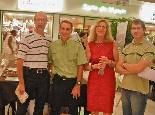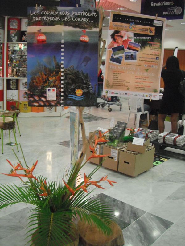 Vendredi après-midi j’ai tenu "mon quart" aux journées du Développement Durable dans le stand des administrations. Il n’y avait pas d’affluence et les échanges avec le public étaient très riches. Quand tout à coup un homme se dirige vers moi, je lui propose de tester ses connaissances sur la faune de Gwada et « misère » il s’exprime en anglais. J’engage la discussion en lui demandant son origine et il me répond « England ». Alors avec mon anglais limité je comprends qu’il est en Gwada pour un mois et qu’il aide un ami guadeloupéen (bricolage). Il me confie ses difficultés en ne trouvant pas grand chose en langue anglaise. Sur ce arrivent les renforts, Nady en personne. Notre ami lui présente des bombes aérosols de peinture qu’il vient d’acheter dans un magasin de bricolage bien connu, et nous constatons que le mode d’emploi y est décliné en de multiples langues sauf en anglais. J’hallucine, il y a même du tchèque et du polonais. L’homme confirme ses dires car sur notre présentoir il n’y a pas un seul document en anglais. En boutade je lui indique que les touristes sont plutôt circonscrits aux hôtels et plages et que là tout est fait pour leur aise. Et là encore Nady fait un miracle et elle lui remet un grand dépliant en français et anglais "Voyage au coeur de la nature des petites Antilles", co-produit par le Conservatoire du Littoral, la direction de l’Environnement et l’association Action Nature de Saint-Martin.
