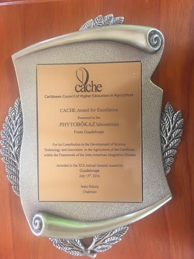 A l’occasion de la 52ème rencontre de la CFCS (Caribean Food Crops Society) qui s’est tenue en Guadeloupe du 11 au 16 juillet 2016 et qui a rassemblé près de 200 chercheurs de la Grande Caraïbe, sur notamment les enjeux de l’agroécologie et de la bioéconomie, l’entreprise Phytobokaz a été distinguée en recevant le "CACHE AWARD of Excellence".