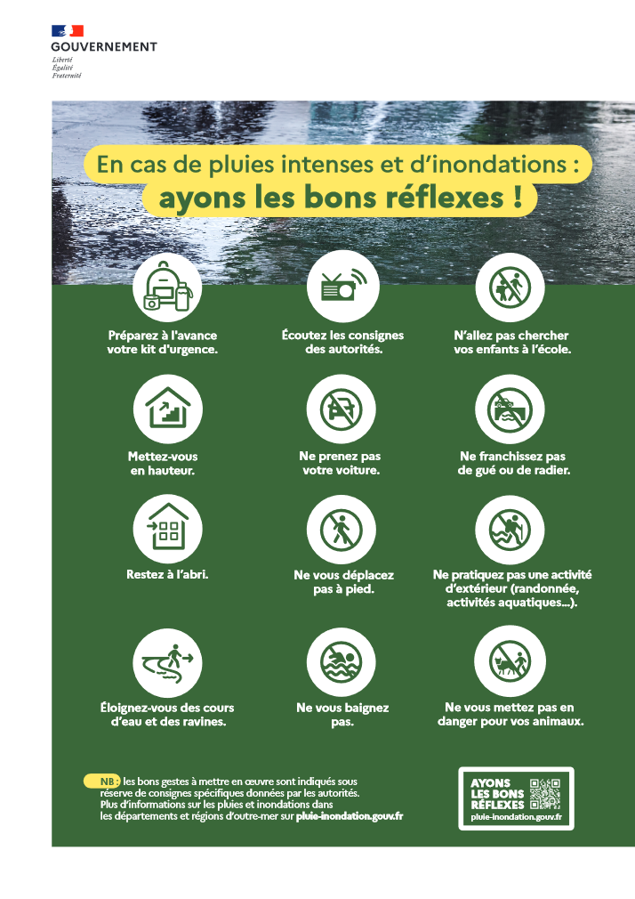 Pour connaitre tous les bons réflexes, cliquez sur : Pluie et inondation aux Antilles