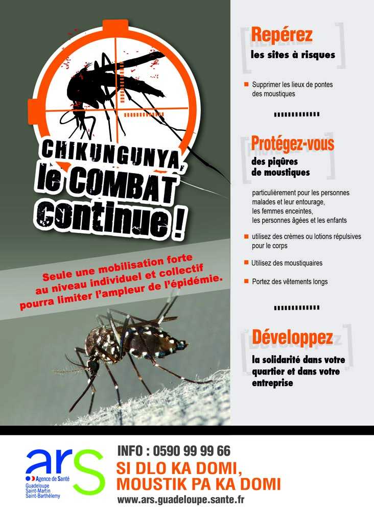 ARS, Joël Gustave (Service lutte Anti vectorielle) 0690 49 57 19 ; Lydia Ebing-Moro (Communication Lutte Anti-vectorielle) 0690 99 28 59.