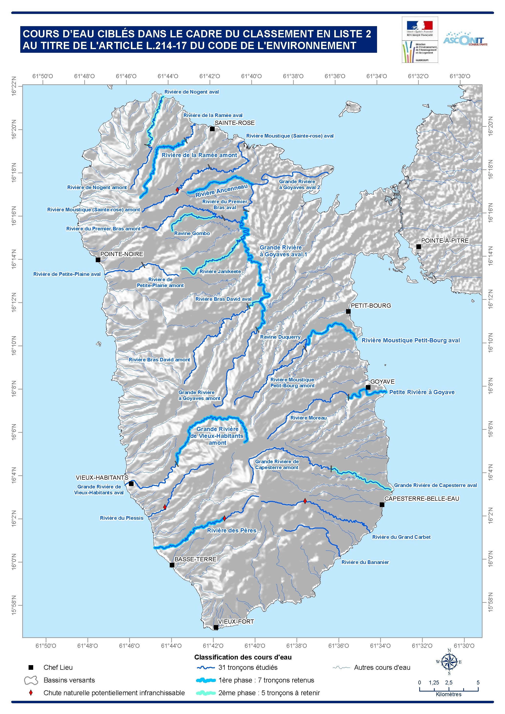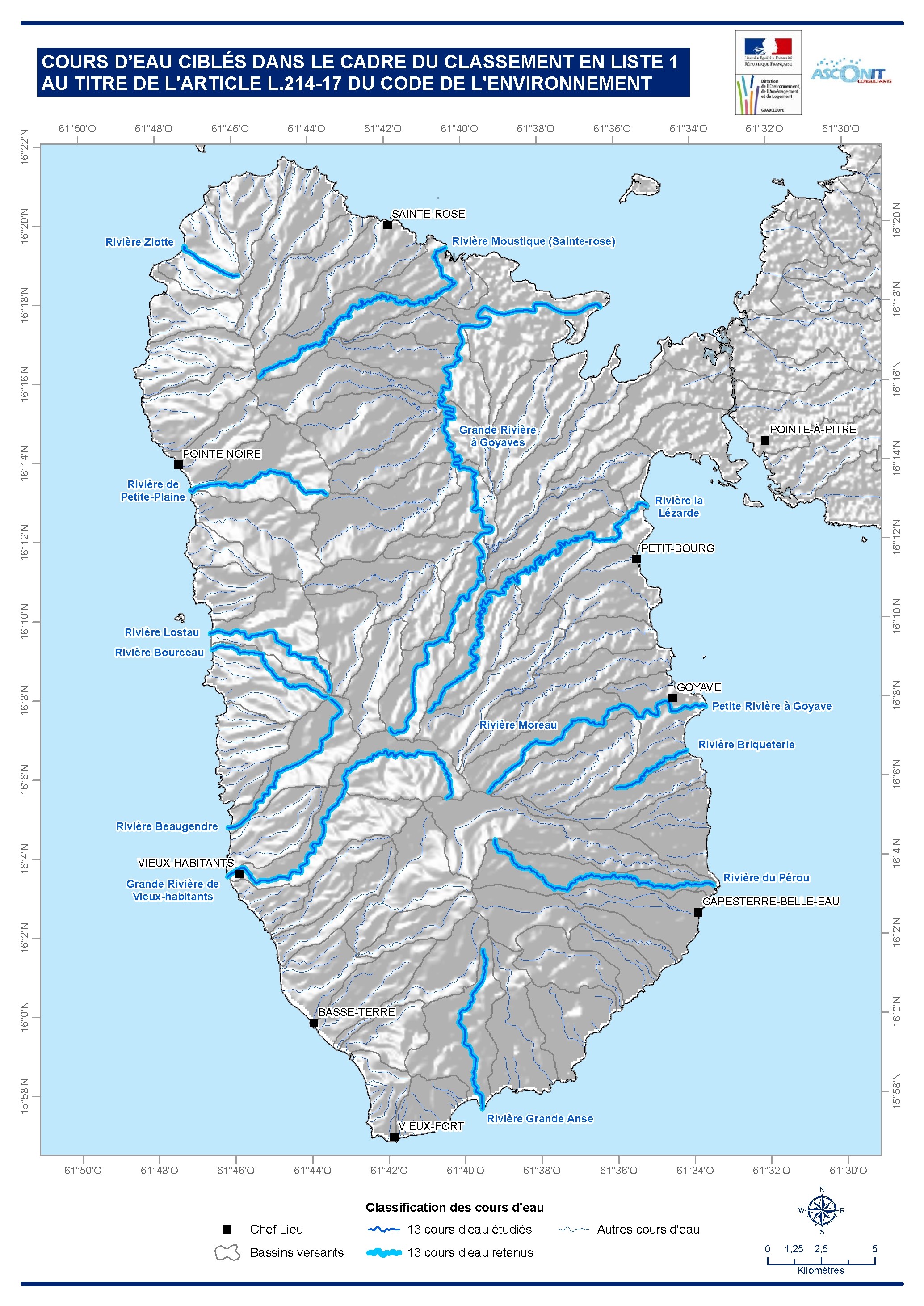Le classement des cours d’eau a enfin fait l’objet de deux arrêtés du préfet de Guadeloupe en date du 5 novembre 2015, publiés au Journal Officiel le 20 novembre 2015 : arrêté_liste_1° et arrêté_liste_2°.
