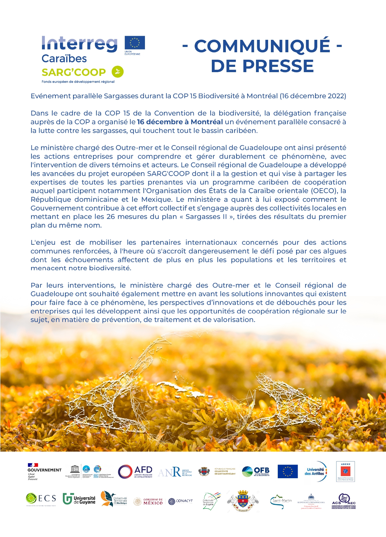 Communiqué de presse relatif à la problématique des sargasses dans la cadre de la COP 15