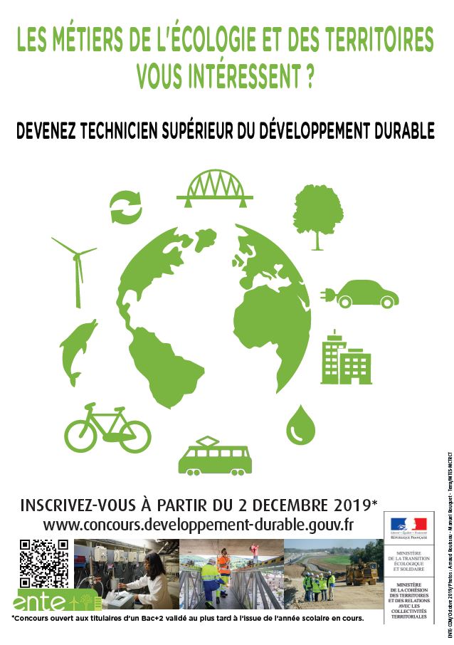 Inscriptions : à partir du 2 décembre 2019 sur www.concours.developpement-durable.gouv.fr