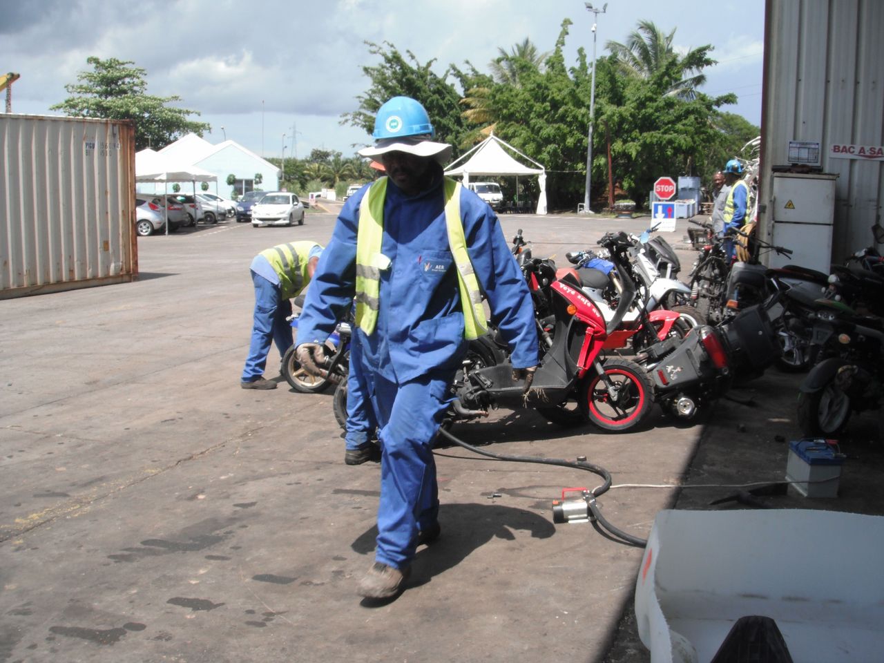 L’entreprise industrielle "Antilles Environnement Recyclage" ou AER, spécialisée dans la filière des déchets et recyclage (certification Iso 90001 et Iso 14001) intervient au début du processus de destruction de ces engins confisqués.