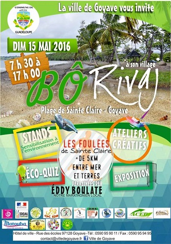 La ville de Goyave vous invite à son grand village Bô Rivaj le Dimanche 15 Mai 2016 de 9h à 19h sur la plage de Sainte-Claire (Goyave).