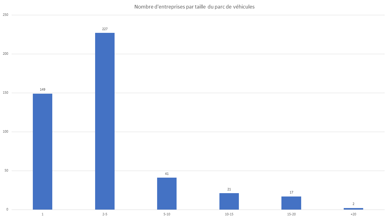 Une grande majorité des entreprises dispose d’un parc de petite taille. 80% d’entre elles détiennent un parc de moins de 5 véhicules.