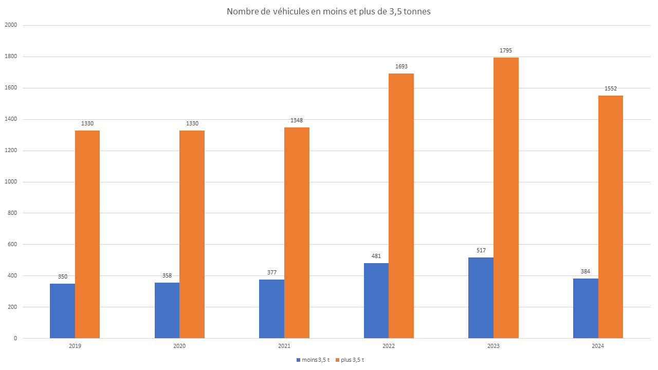 Évolution du nombre de véhicules de moins et de plus de 3,5 tonnes