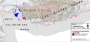 L’étude co-financée par le Conseil Régional, la DEAL et la dotation du service public du BRGM a permis d’évaluer la dynamique du trait de côte de l’archipel guadeloupéen au cours des 50 dernières années afin de comprendre les phénomènes en jeu à l’échelle régionale et établir un état de référence. L’objectif était de comprendre les évolutions passées pour anticiper au mieux les évolutions futures.