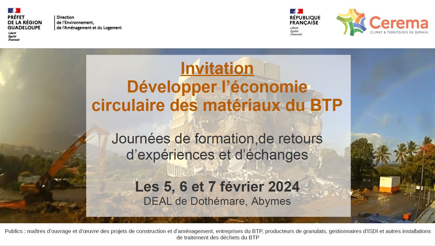 Formation les 5, 6 et 7 février 2024 - Développer l’économie circulaire des matériaux du BTP