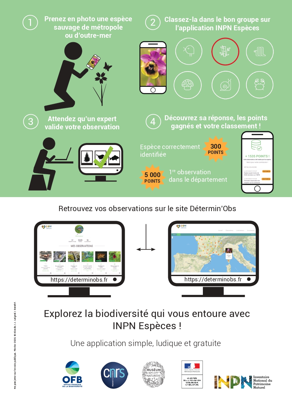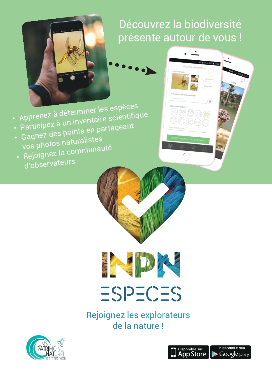 Découvrez la nouvelle application qui vous permet de découvrir, depuis votre mobile, la diversité des espèces présentes autour de vous et de participer à l’inventaire de la biodiversité de votre commune.