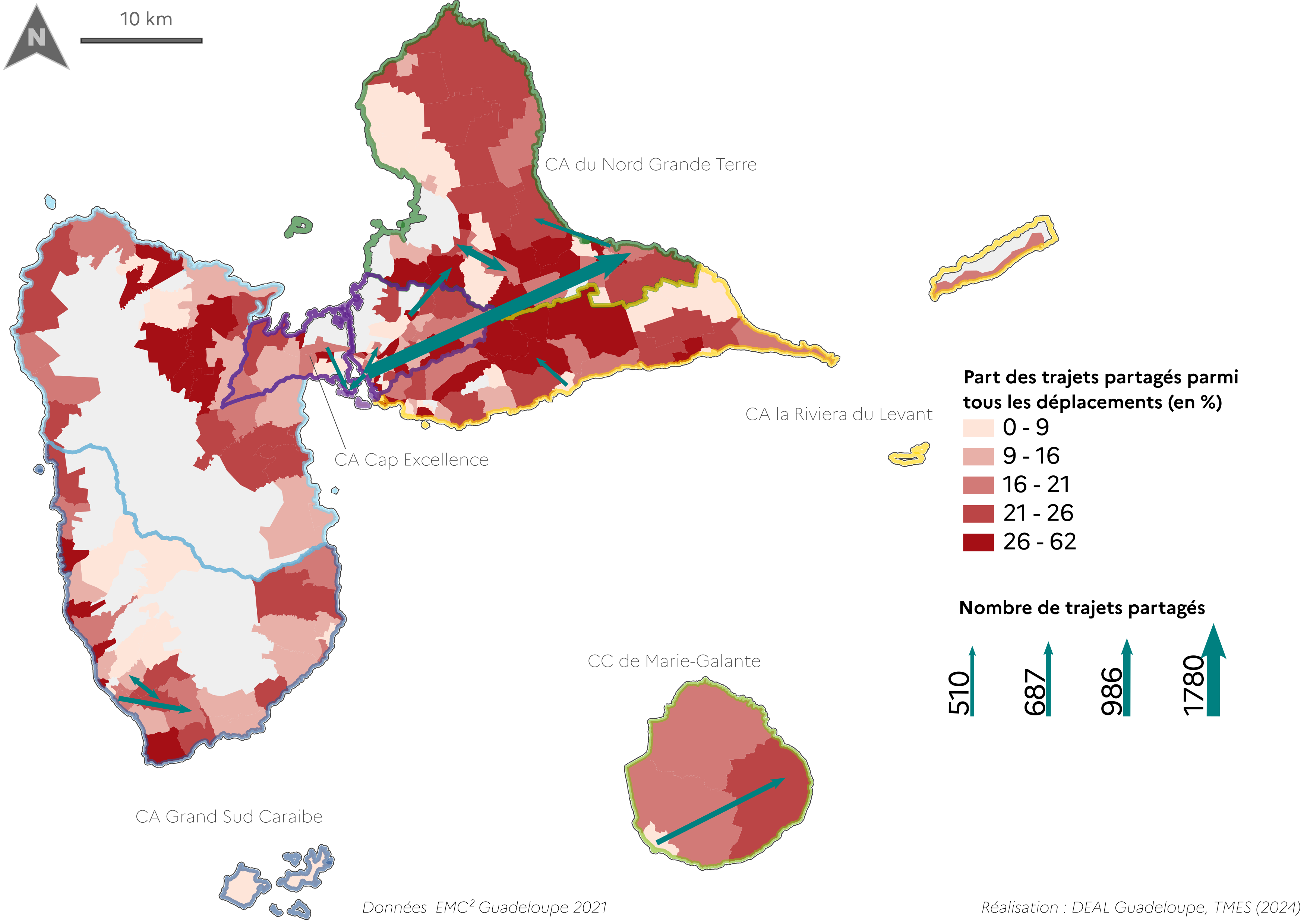 Intensité et localisation du covoiturage en Guadeloupe_EMC2