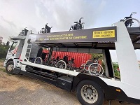 Deux cercueils symbolisant les conséquences des conduites dangereuses et des comportements à risque, sont ajoutés au convoi de fauteuils roulants fixés sur le camion, pour exhorter la population à davantage de prudence.