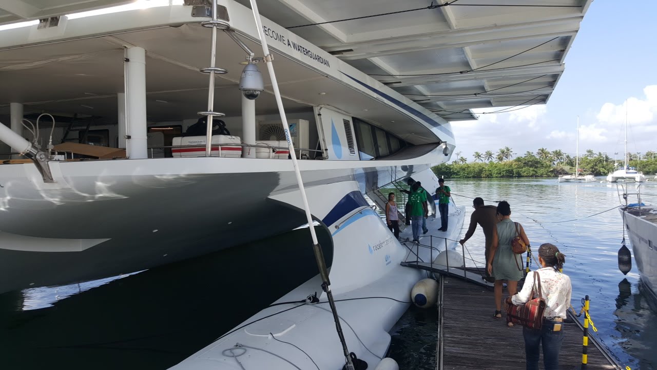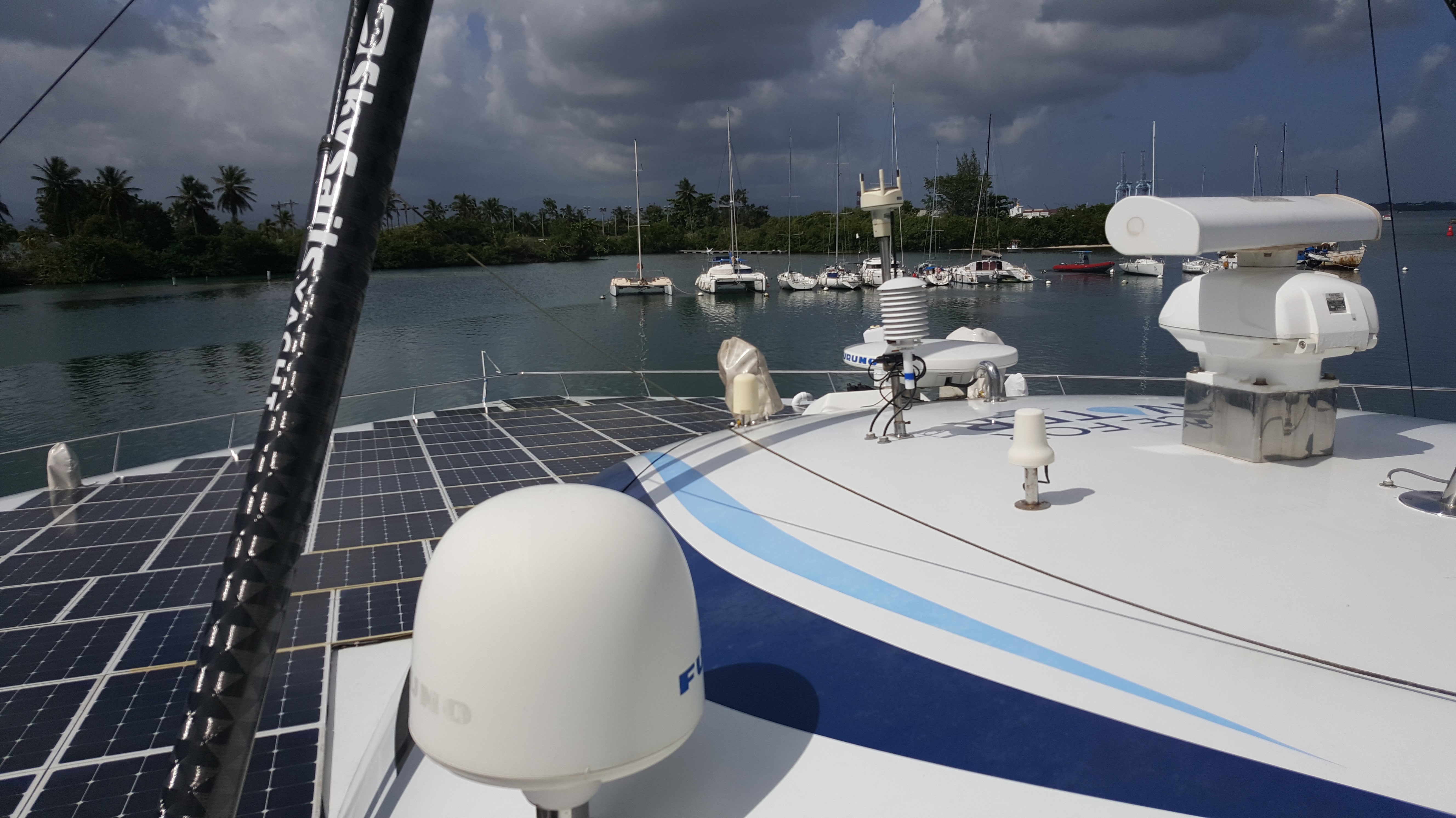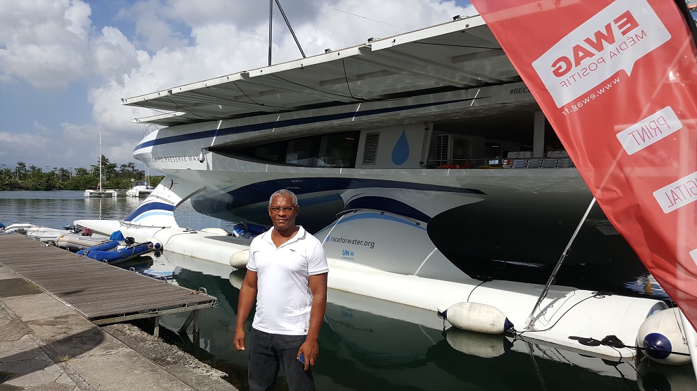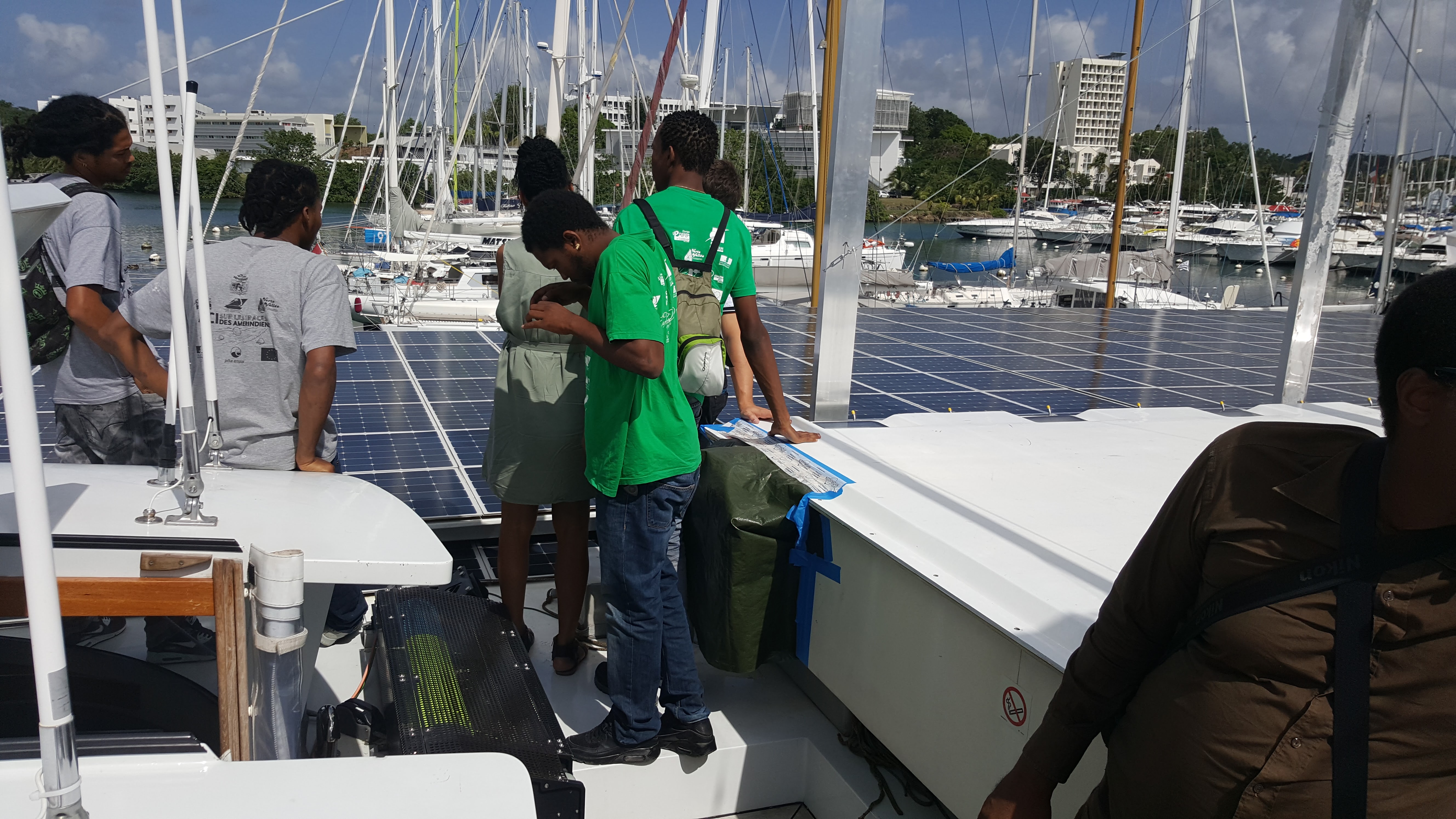 Les jeunes salariés de Verte Vallée en contrat d’insertion ont eu droit à une présentation du projet Race for Water, navire révolutionnaire à propulsion mixte solaire-hydrogène-kite. L’objectif de cette expédition qui parcourt le monde à l’initiative de la Fondation Race for Water, est de sensibiliser la population à l’urgence de préserver l’environnement, et singulièrement les fonds marins. « En soutenant cette initiative de Verte Vallée qui a permis à ces jeunes de monter à bord du “Race for Water”, nous poursuivons plusieurs objectifs » précise Philippe Wattiau, chef de la mission développement durable et évaluation environnementale à la DEAL. « D’une part, nous contribuons à la sensibilisation à l’environnement de tous les habitants de la Guadeloupe. Cette démarche s’inscrit aussi dans un cadre plus général de l’engagement pris par la France de mener auprès de sa population des actions portant sur l’éducation à l’environnement et au développement durable, conformément à l’objectif affiché par l’Organisation des Nations unies. D’autre part, il s’agit pour la DEAL d’assurer la promotion des métiers de la mer dans le cadre de l’économie bleue (activités de production ou de services en contact direct avec l’océan) ». Sur ce point, la direction de l’environnement de l’aménagement et du logement (DEAL) souhaite activer une filière de recyclage des bateaux de plaisance hors d’usage (BPHU). Dans cette objectif, une consultation a été lancée auprès des différents acteurs locaux, dont l’association "Verte Vallée" pour le volet insertion par l’activité économique. La fédération des industries nautiques estime que les côtes seraient encombrées de 1200 épaves à Saint-Martin, 600 en Guadeloupe et 400 en Martinique. Si cette filière contribue à nettoyer les côtes de l’archipel, elle est aussi une source d’emplois et d’économie. Les salariés de structures d’insertion, dont ceux de Verte Vallée peuvent s’insérer dans cette filière à condition d’être encadrés par des personnes compétentes au sein de structures spécialisées et agréées. La démarche serait ainsi facilitée, car plusieurs opérateurs en Guadeloupe détiennent les habilitations requises. Charles Chavoudiga, directeur de Verte Vallée, confirme l’intérêt de son association pour les activités nautiques : « nous recrutons des jeunes très éloignés de l’emploi, pour qui nous cherchons toutes les solutions possibles d’insertion professionnelle. La visite sur ce bateau pourrait les aider à construire leur projet professionnel. Par ailleurs, il convient de souligner que la DIECCTE, des professionnels et la DEAL, réfléchissent ensemble à un chantier d’insertion axé sur les métiers de la mer ».