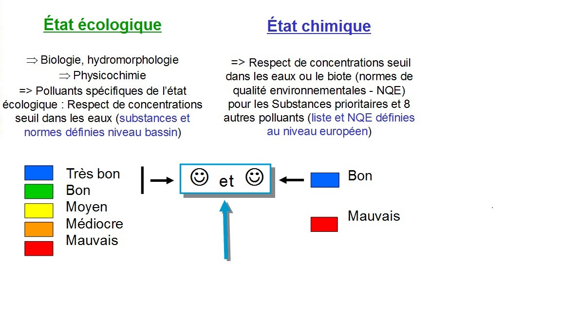 (4) Etat chimique : le respect des concentrations de substances prioritaires fixées par certaines directives européennes.
