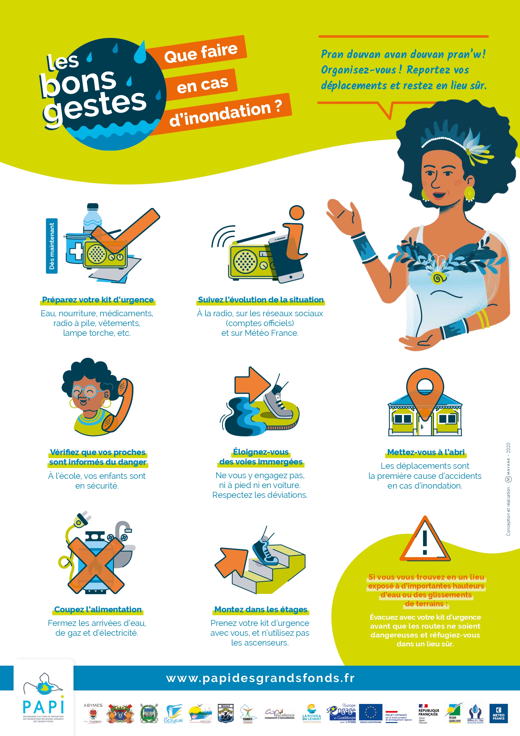 Pour limiter la vulnérabilité de la population face à ces événements, ces communes et de nombreux partenaires se sont engagés dans l’élaboration et la mise en œuvre d’un Programme d’Actions de Prévention des Inondations (PAPI). C’est ainsi qu’est né le PAPI des bassins versants des Grands-Fonds.