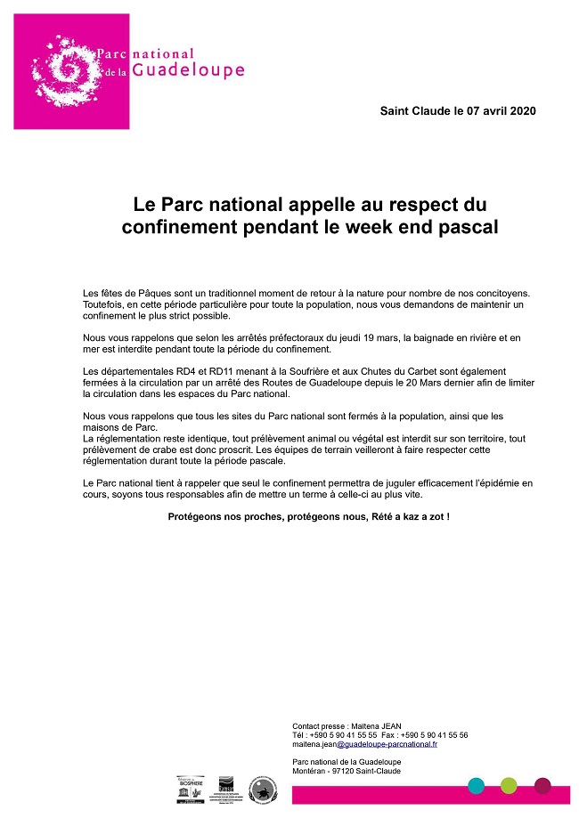 Le Parc national appelle au respect du confinement pendant le week-end pascal
