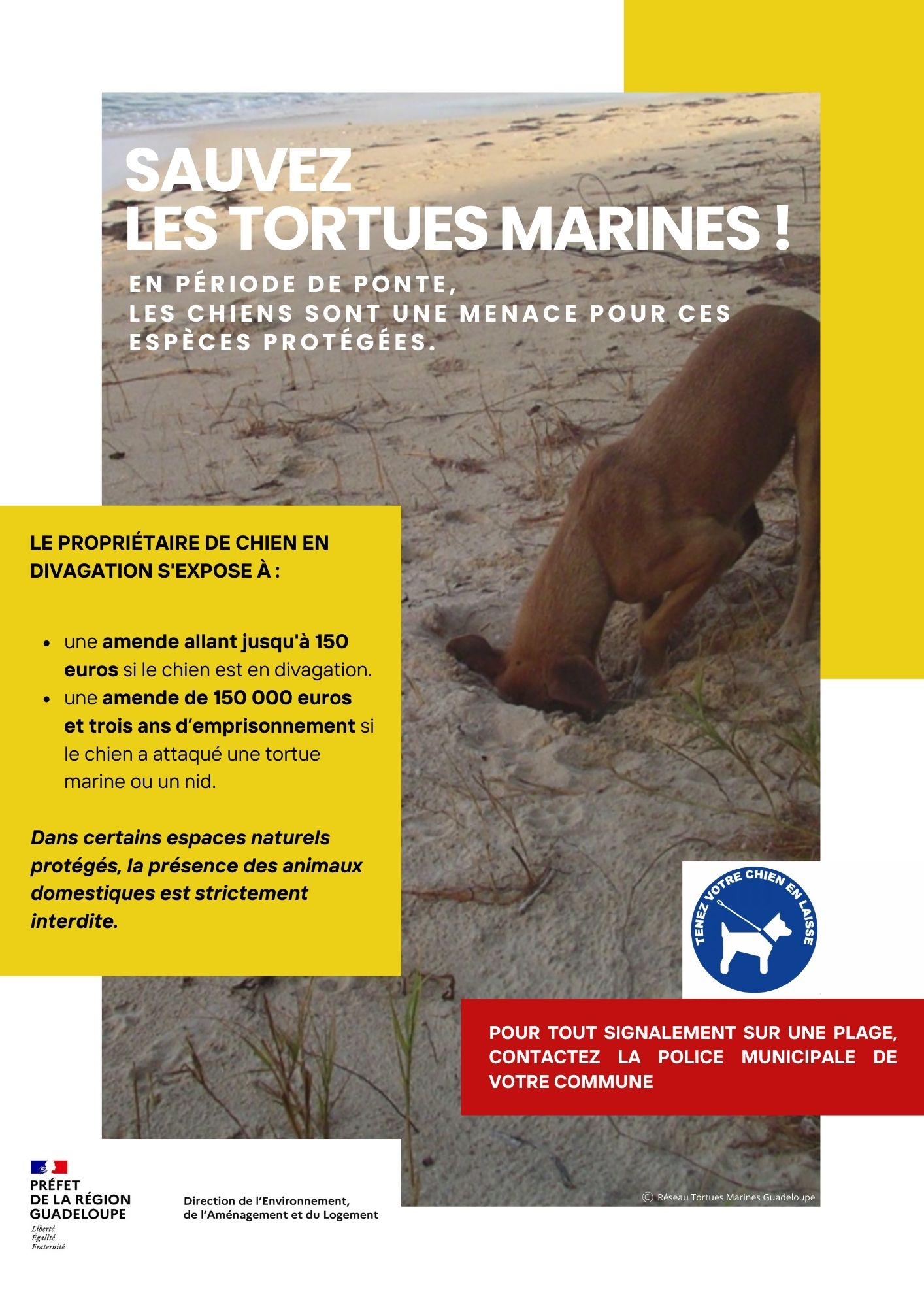 - une amende de 150 000€ et trois ans d’emprisonnement si le chien a attaqué une tortue marine ou un nid