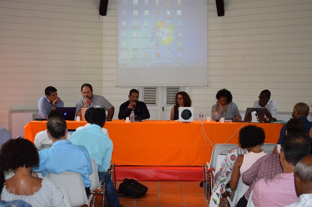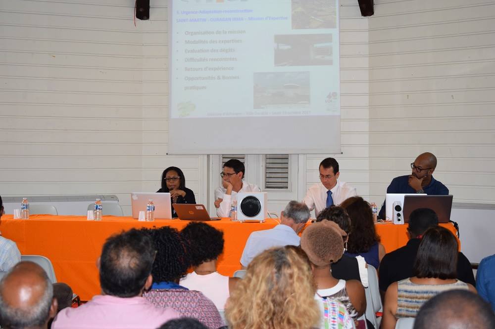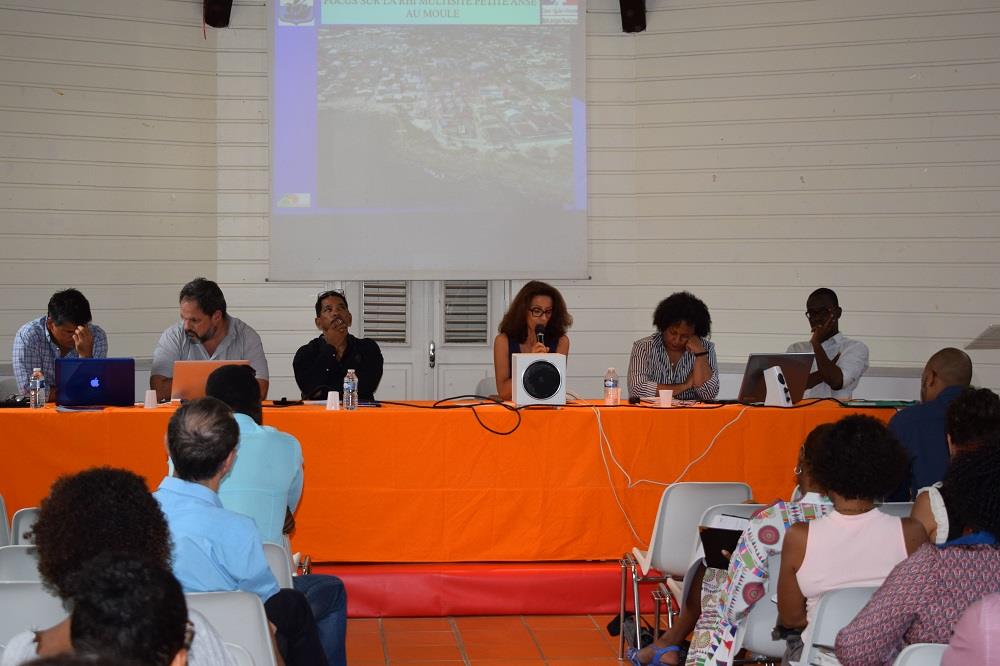 La table ronde, animée par J-P Arnaud (DEAL), a réuni M. Bergopsom (AG50), A. Hannouz (Architecte conseil de la DEAL), V. Derussy (SEMSAMAR), J-L Romana (DGA ville du MOULE) et F. Chauvel (BE URBIS). Les interventions ont révélé la nécessité d’agir à la fois sur les politiques publiques et sur les comportements afin amoindrir les difficultés induites par les changements climatiques.