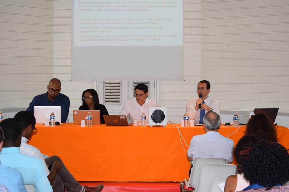 Le climat est un phénomène complexe dont la compréhension implique des spécialistes de différents domaines. Ainsi, les recherches du Laboratoire LARGE, rapportées par N. Zahibo et D. Bernard, mettent en évidence les effets de la montée des eaux et l’intensification des aléas climatiques. A noter le fait que le territoire subit des transformations dites « silencieuses », visibles uniquement sur le long terme.