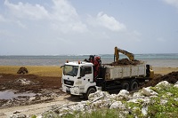 - La poursuite du soutien exceptionnel aux collectivités à la fois en termes d’investissements (achat de machine) et de fonctionnement (prestations de ramassage, mobilisation des entreprises) pour le ramassage des algues échouées. 3 millions d’euros ont été engagés depuis 2 mois en Guadeloupe et en Martinique, et ont permis d’obtenir des résultats encourageants. L’Etat apportera 3 millions d’euros supplémentaires pour continuer de faire face à l’urgence.