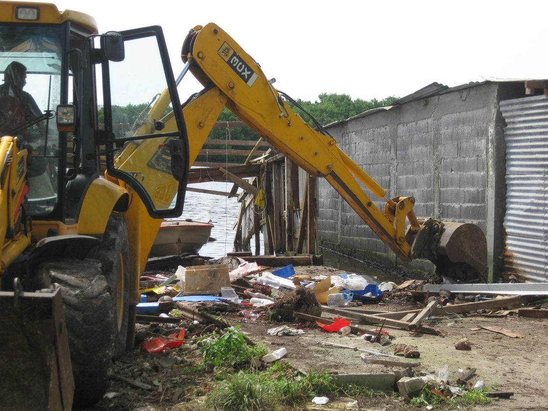 Sur le domaine public maritime naturel, une quinzaine de baraquements de pêcheurs étaient implantés dans un paysage d’immondices. Les usagers pouvaient les apercevoir après le Pont de la Gabarre, dans le sens Pointe-à-Pitre / Basse-Terre, ou en remontant par bateau, la rivière Salée.