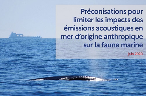 Le Ministère de la transition écologique et solidaire a publié en juin 2019 un guide de préconisations pour limiter les impacts des émissions acoustiques en mer. Il est destiné aux services centraux et déconcentrés de l’État et à tout acteur concerné par l’évaluation des impacts environnementaux (bureaux d’études, gestionnaires d’aires marines protégées, industriels, etc).