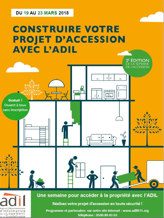 Portes ouvertes à l’ADIL Guadeloupe du 19 au 23 mars 2018 sur la construction du projet d’accession, avec la participation de la DEAL pour tout ce qui concerne la norme parasismique et paracyclonique…