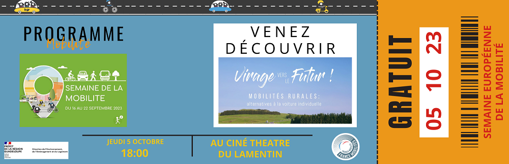 Dans le cadre de la semaine européenne du développement durable (dans laquelle la mobilité durable trouve toute sa place), et dans la continuité de la semaine européenne de la mobilité, la DEAL de Guadeloupe propose une projection cinématographique du film "Virage vers le futur" suivi d’un débat : temps d’échange avec les spectateurs sur la base de cette projection
