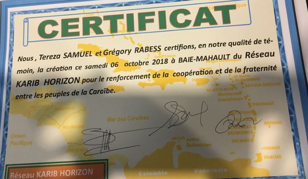Les organisations porteuses de projets dans la Grande Caraïbes invitées par le comité de pilotage du RRMA se sont réunis à la bibliothèque Paul Mado, Baie-Mahault, le 6 octobre 2018. L’évènement a fait l’objet d’une assemblée Générale Constitutive qui a approuvé la charte RRMA en lui donnant pour nom : "KARIB HORIZON". Plusieurs temps forts : élection des administrateurs, validation des statuts de l’association et adoption du plan d’action 2019-2021.