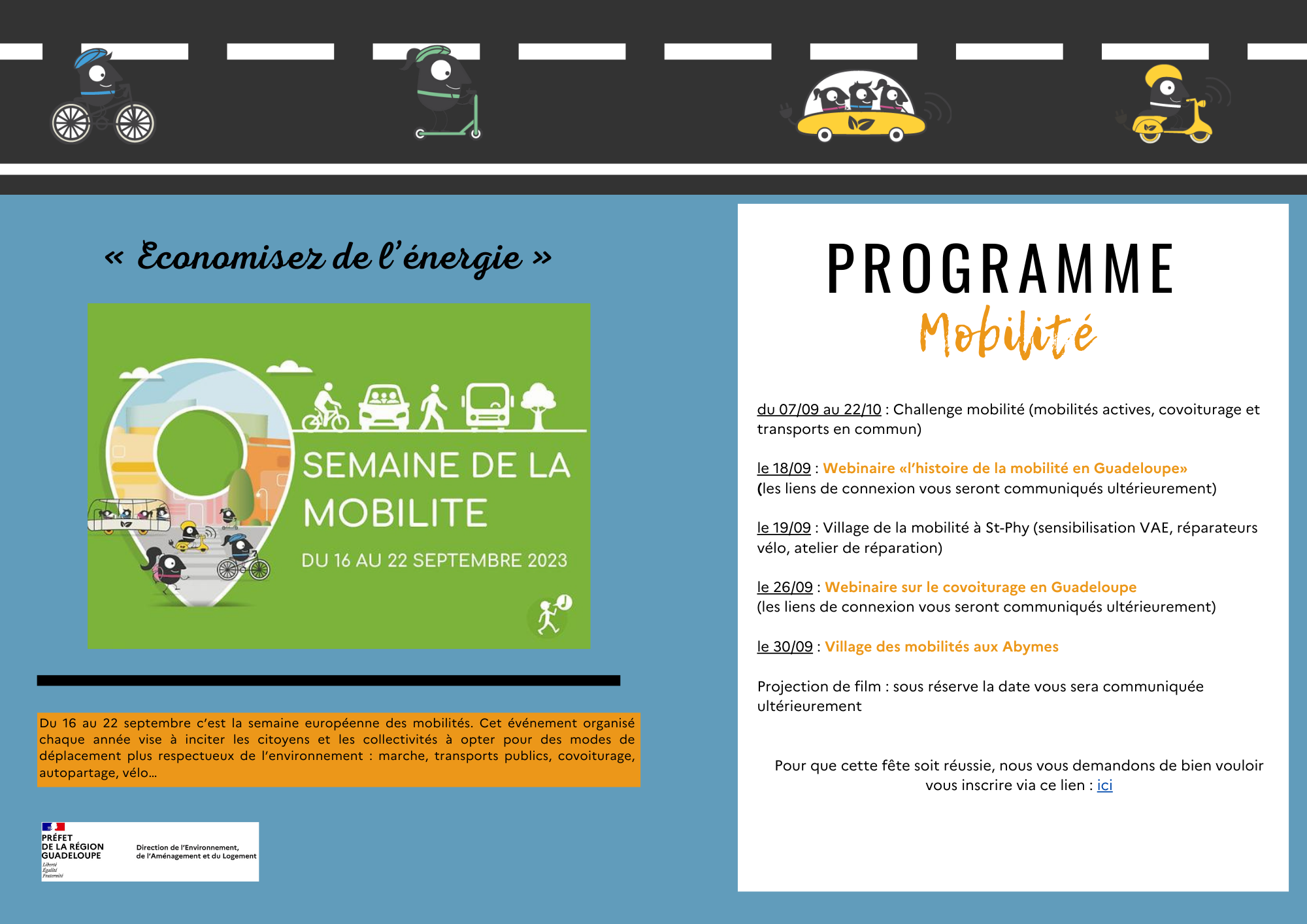 Programmes des actions organisées par la DEAL Guadeloupe dans le cadre de Semaine Européenne de la Mobilité