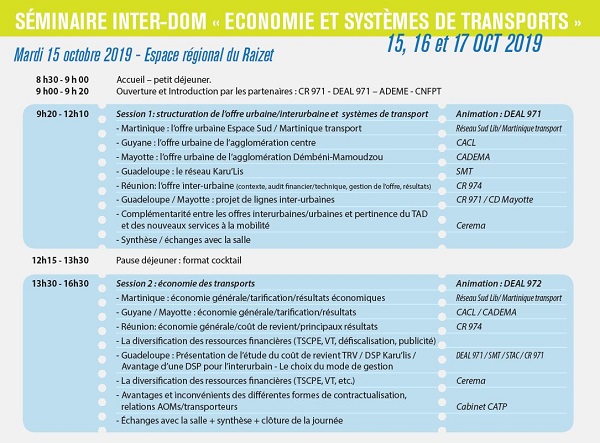 Séminaire INTER-DOM "Economie et système de transports" du 15 au 17 octobre 2019.