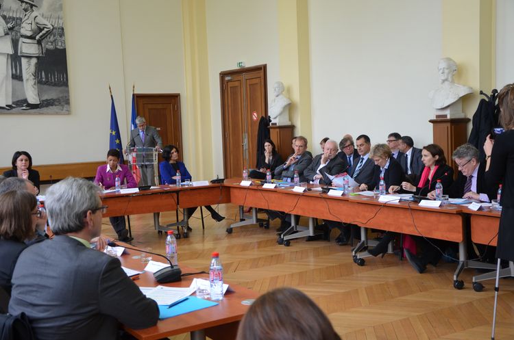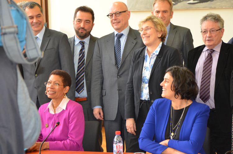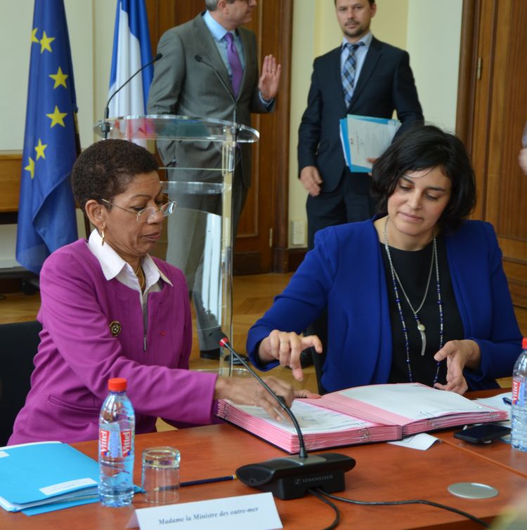 La ministre du Logement, de l’Egalité des territoires et de la Ruralité, Mme Sylvia Pinel, la ministre des Outre-Mer, Georges Pau-Langevin et la secrétaire d’Etat chargée de la Politique de la Ville, Myriam El Khomri, ont présenté et signé "le plan logement Outre-Mer".