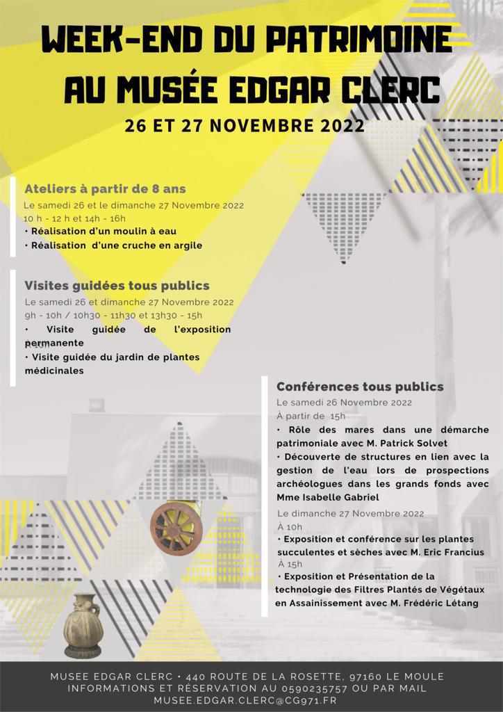 Week-end du patrimoine au musée Edgar Clerc les 26 et 27 nov. 2022